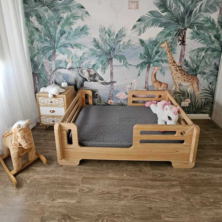 La Cama Cuna TUKI, ¡tu aliada para las noches más cómodas y seguras! Con su diseño cuidadosamente pensado, esta cama baja con barandas incorporadas está diseñada para ser la primera cama de tus pequeños, fomentando su desarrollo de motricidad gruesa, equilibrio y propiocepción. Es la transición ideal, brindando seguridad y confort para que los niños se sientan seguros al dar este importante paso.